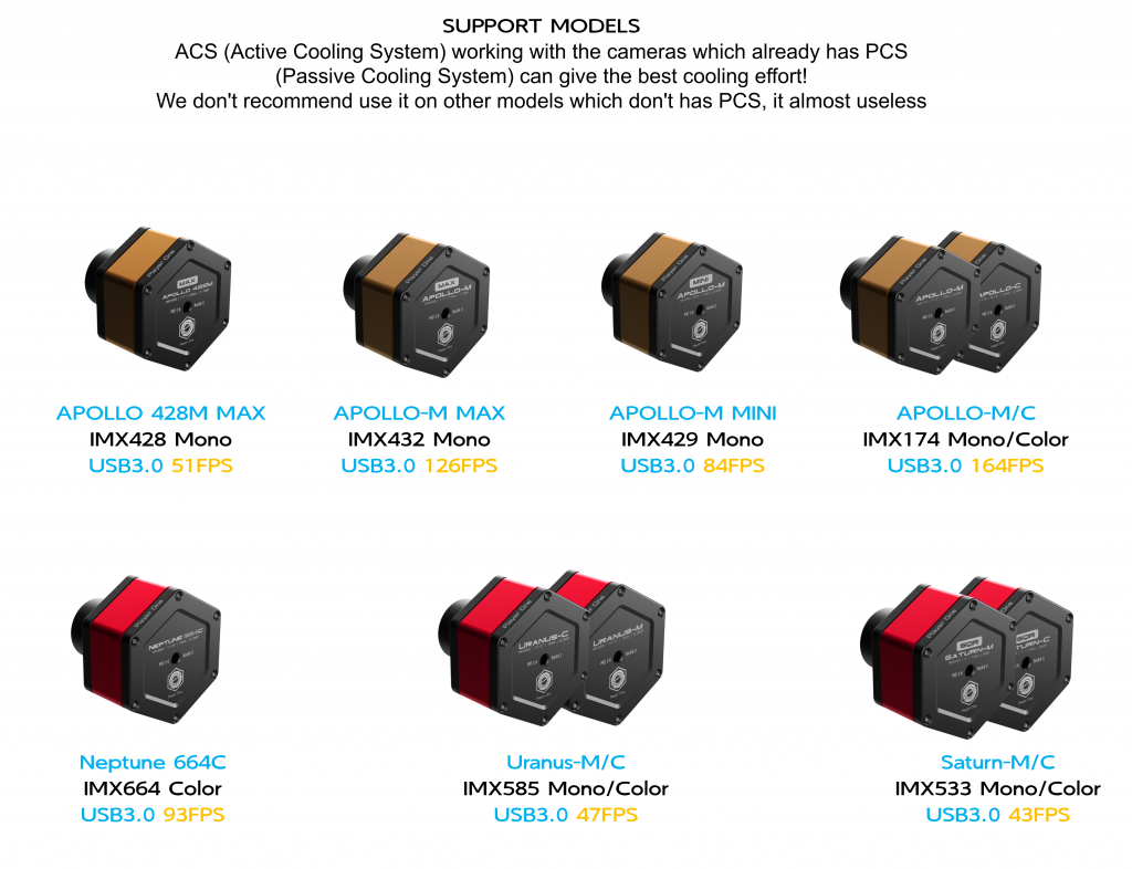 ACS is only useful on some uncooled cameras, not all of them. The camera must already has PCS in it, so that heat from sensor could transmit to the shield, then the ACS can dissipate heat by air cooling.