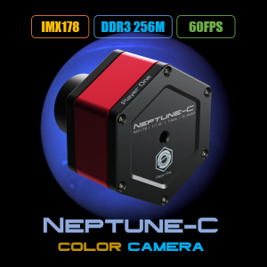 Neptune-M is a planetary camera developed by Player One Astronomy, which adopts the Sony IMX178 1/1.8” format sensor. The 2.4um pixel size accommodates a well depth of 15ke with a total of 6.4MP (the resolution is 3096*2078), and the diagonal is 9mm.