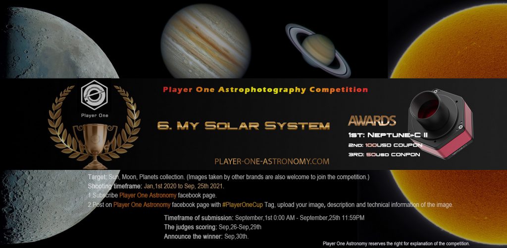This is a series competition in every month, each of which will have a theme. After Saturn and Jupiter opposition, it’s time for make a solar system collection 2020-2021. Solar, Lunar and Planetary images are all qualified. If you could make a collection of all target will get plus point.