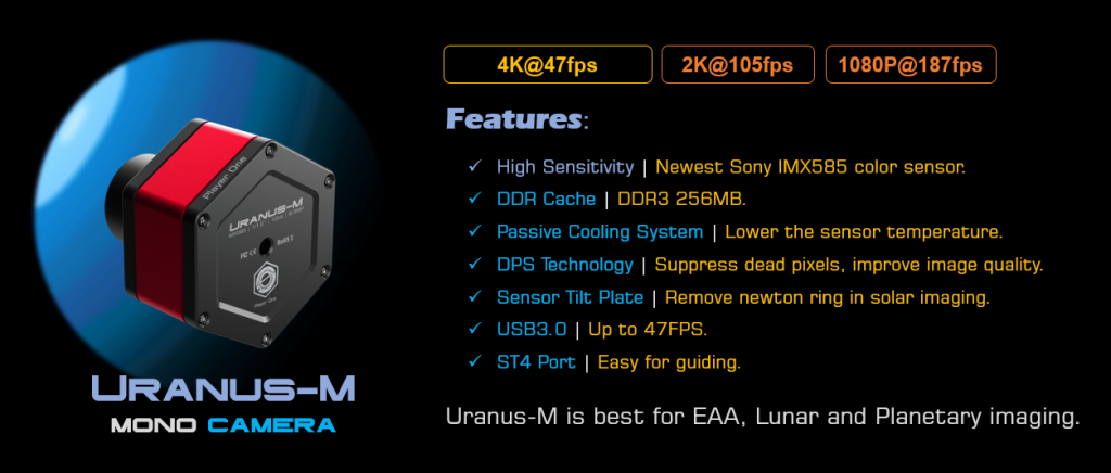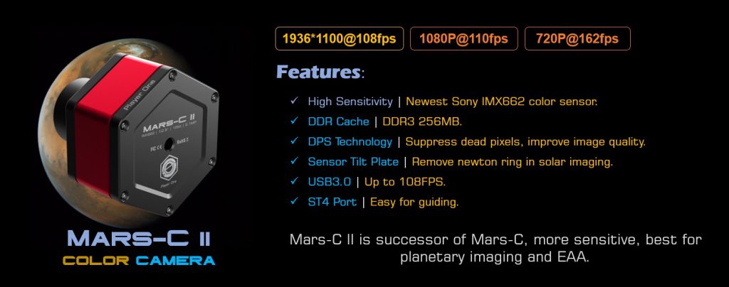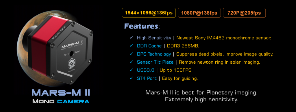 Saturn-M SQR (IMX533) Saturn-C SQR (IMX533) Uranus-M (IMX585) Uranus-C (IMX585) Mars-M II (IMX462) Mars-C II (IMX662) Neptune-C II (IMX464) Neptune-M (IMX178) Mars-C (IMX462) Mars-M (IMX290) Ceres-C (IMX224)