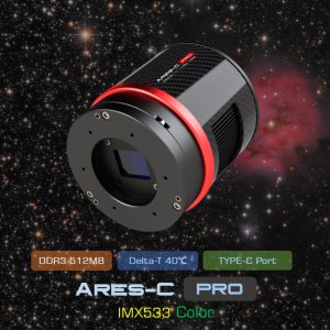 The Apollo-M MAX Pro cooled camera using same design as Ares cooled series, but a little difference! With a round body, a golden and black color scheme, and using carbon fiber to keep weight down and cutting-edge outlook. We also integrated the sensor tilter plate and anti-dew PCB board. This series of designs makes the camera not only light and cool, but also functional!