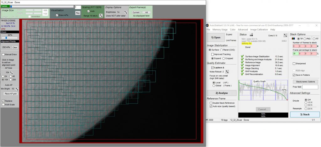 Would it be possible to share a raw tiff stacks (just stacks, no other processing) for the same session and same target – preferably showing protuberances and surface structure – with similar amount of frames