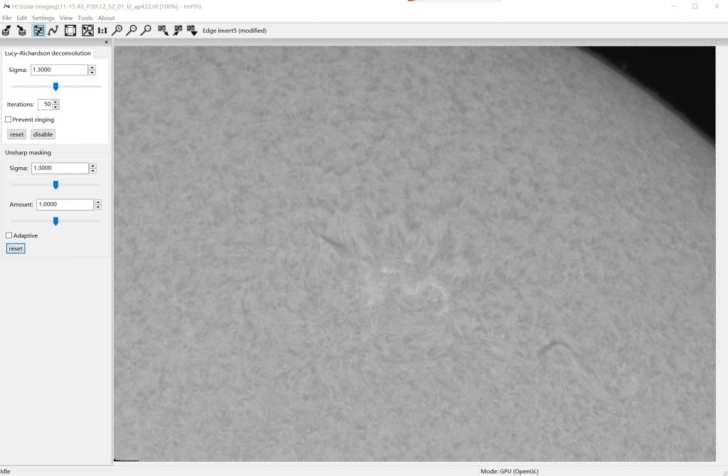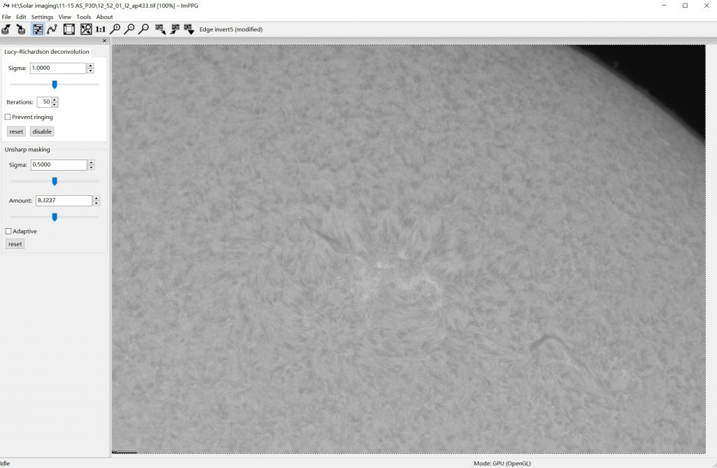 Stacked image, there are many kinds of processing software can do post-processing, finally found that IMPPG is best to make invert image . However, the parameters in IMPPG are very difficult to adjust, and it took me many attempts to find the suitable parameters.