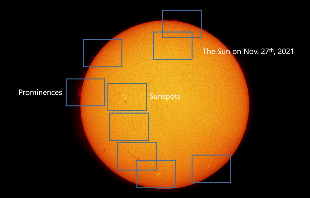 When focusing, it is recommended to select the active region with the most prominent features on the sun. Such an area has more details and features, and it is easy to judge the accuracy of focusing.