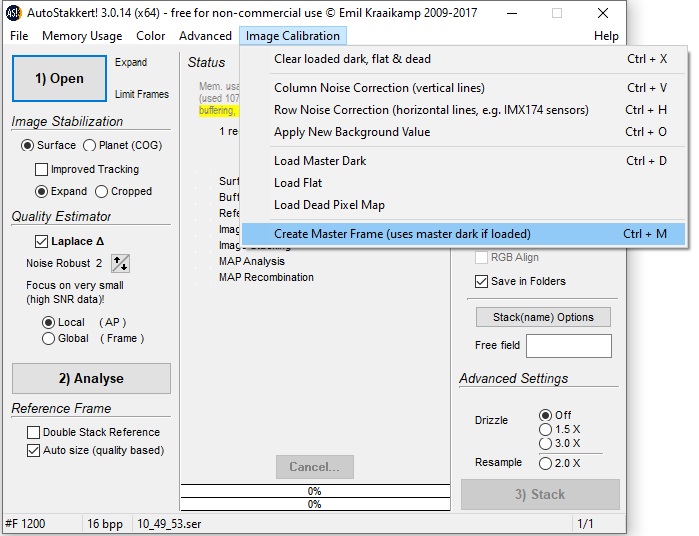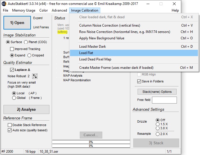 Drag flat field video into AS! 3, select Create Master Frame from the menu and you can quickly stacked the flat field video into a single master flat (it only takes a few seconds).