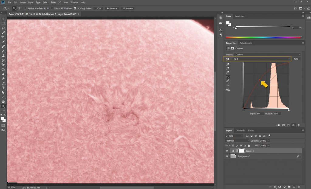 First ,we need to add a curve layer. Then select the Red channel on the layer.