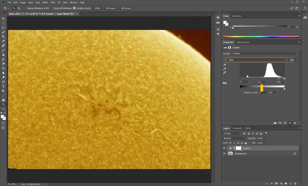 After that, we can start to mix the colors. There are two ways to adjust the sun’s color, one is the Level tool, one is the Curve tool.